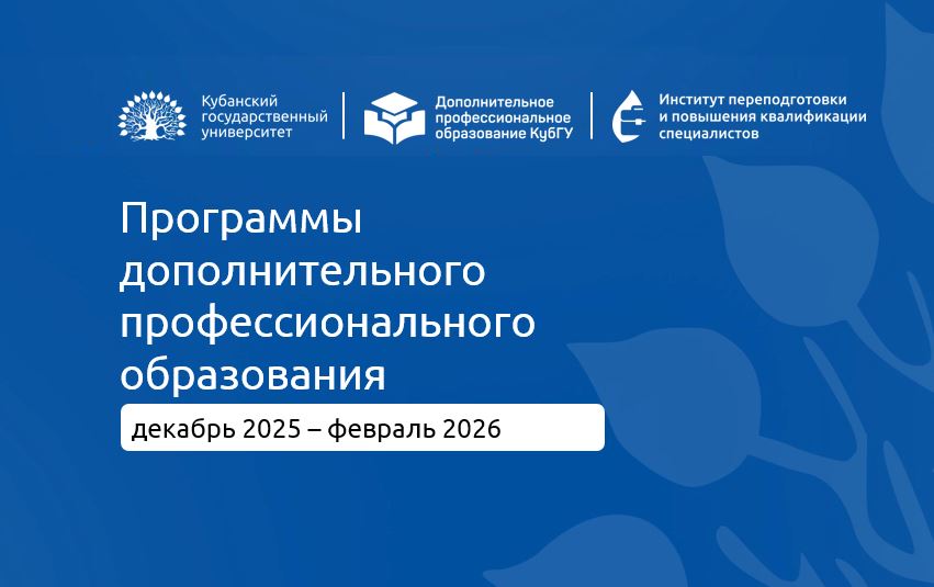 В КубГУ можно обучиться по программам дополнительного профессионального образования. Это программы профессиональной переподготовки (ПП), которые дают право работать в еще одном виде деятельности, и курсы повышения квалификации (ПК)! Для студентов последних курсов – это возможность выпуска с двумя дипломами!
